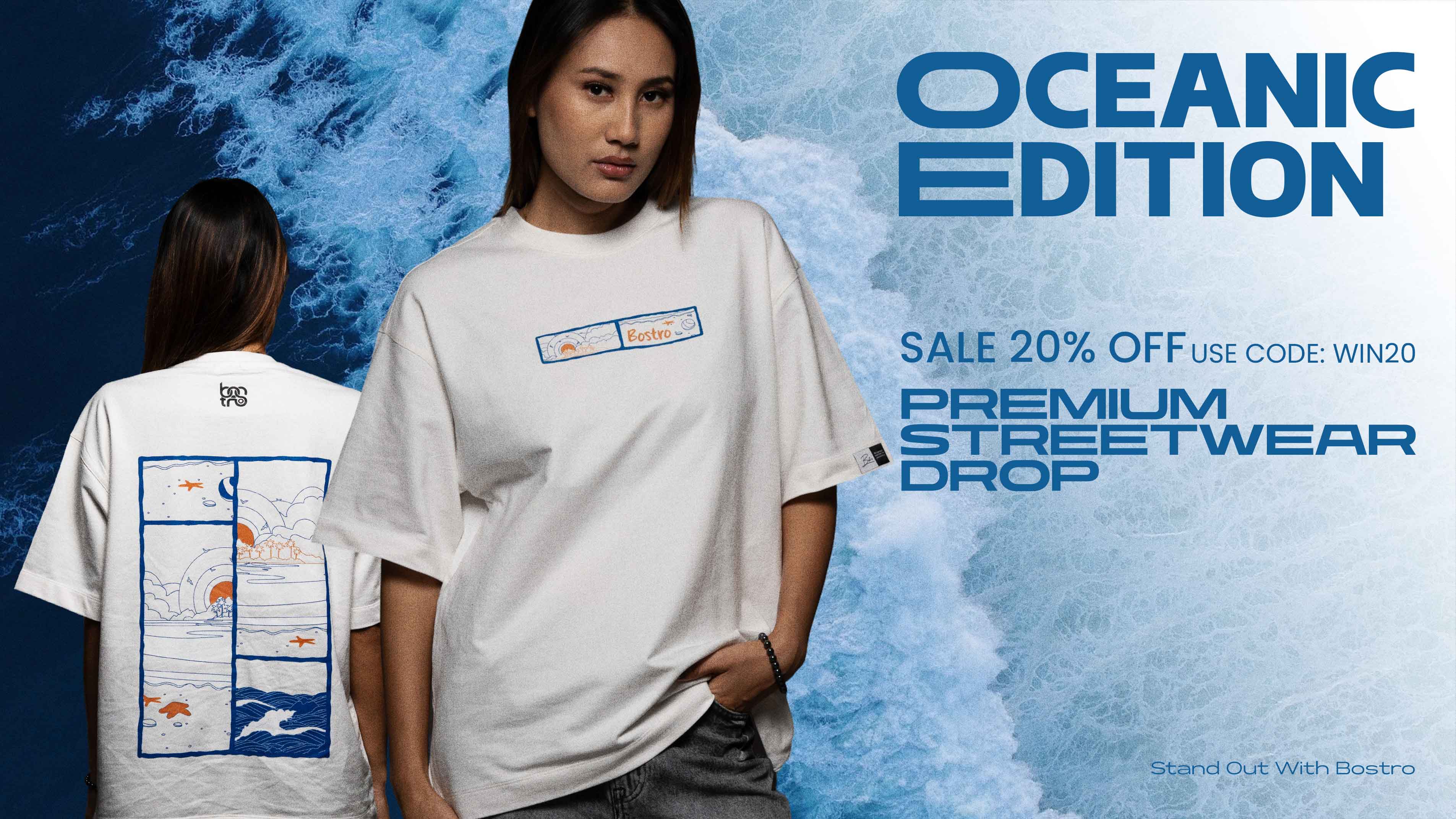 White Oceanic Edition Oversized T-Shirt – 240 GSM Cotton | Bostrowear